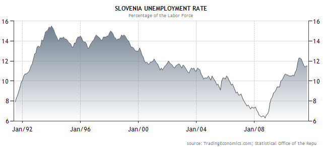 V Sloveniji se je po začetku krize iz leta 2008 brezposelnost skoraj podvojila, industrijska proizvodnja pa se je praktično ustavila. Slovenija je v mandatu Boruta Pahorja, kot mnoge druge države po svetu, poskušala problem brezposelnosti nadomestiti z novimi delovnimi mesti v javni upravi, dodaten strošek pa predstavljajo še socialni transferji, ki jih država plačuje v obliki nadomestil za prekinitev delovnih razmerij ljudi, ki so zaradi krize ostali brez služb. Tako se je vlada znašla v položaju, kjer razkorak med pobranimi davki in obveznostmi države postaja vse večji. Obveznosti rastejo iz dneva v dan, država pa zaradi gospodarske neaktivnosti pobere vse manj davkov. Država tako preko vse večjega zadolževanja poskuša nadomestiti razliko med pobranimi davki in obveznostmi, kar pa znižuje bonitetno oceno in zvišuje ceno zadolževanja Slovenije v tujini. Verjamemo, da se bo omenjen razkorak še povečeval, v kolikor v kratkem ne pride do kolapsa evra ali celotnega finančnega sistema. Kar pa pomeni še manj delovnih mest, višje davke in dosti višjo inflacijo. V kolikor bo Evropska centralna banka poskušala monetizirati dolg najbolj zadolženih evropskih držav. Verjamemo, da bodo ukrepi nove vlade, ki bo poskušala zategniti pasove in uvesti stroge varčevalne ukrepe, povzročili vsesplošno ogorčenje, državno nepokorščino in proteste. Kar bo še dodatno zmanjšalo gospodarsko aktivnost.